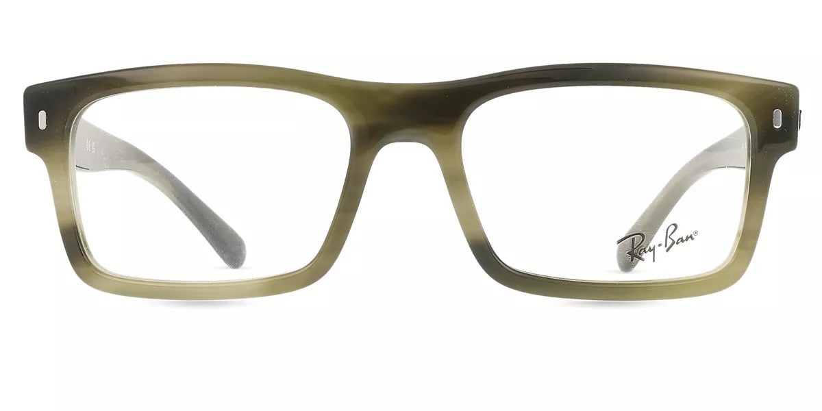 Ray-Ban RX5435 8405 54 eyeglasses in Havana Green. The 8405 Havana Green color frame features Acetate Rectangle Shape in size 54-19-145.
